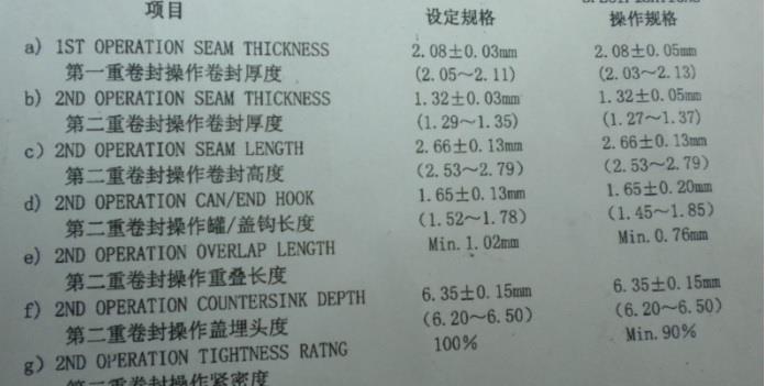 飲料罐卷邊質(zhì)量控制指標(biāo)參考